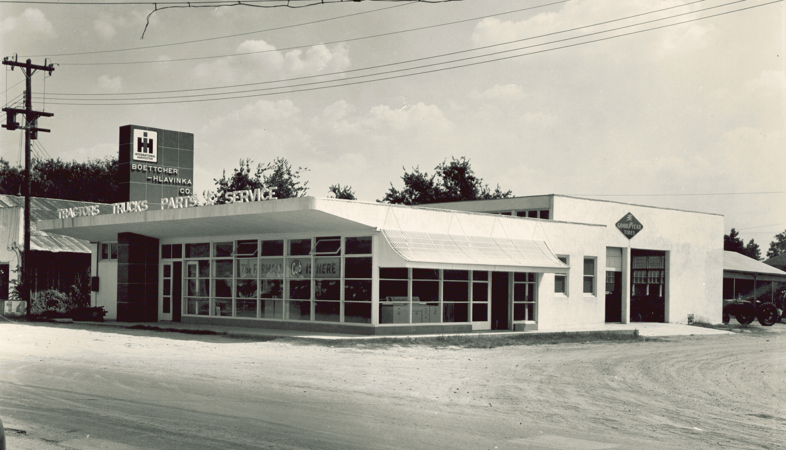 Boettcher-Hlavinka Co. was actively supporting farmers in the community offering farm equipment along with a variety of other services. In addition to offering International Harvester farm equipment and trucks, the Boettcher-Hlavinka Co. was also active in the retail hardware and lumber business. Other products included automobiles such as Kaiser-Frasier with innovations such as fancy new turn signals and air conditioning. The company even once stocked an inventory of caskets to support the funeral business.