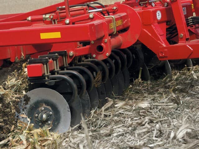 The best time for dealing with compaction is in the fall during your post harvest tillage. Breaking up hardpan and roughing up the surface will improve water and nutrient infiltration over the winter. Primary tillage tools, such as a disc ripper, not only shatter deep compaction but can also cut and mix heavy residue and leave the field level behind the tool.